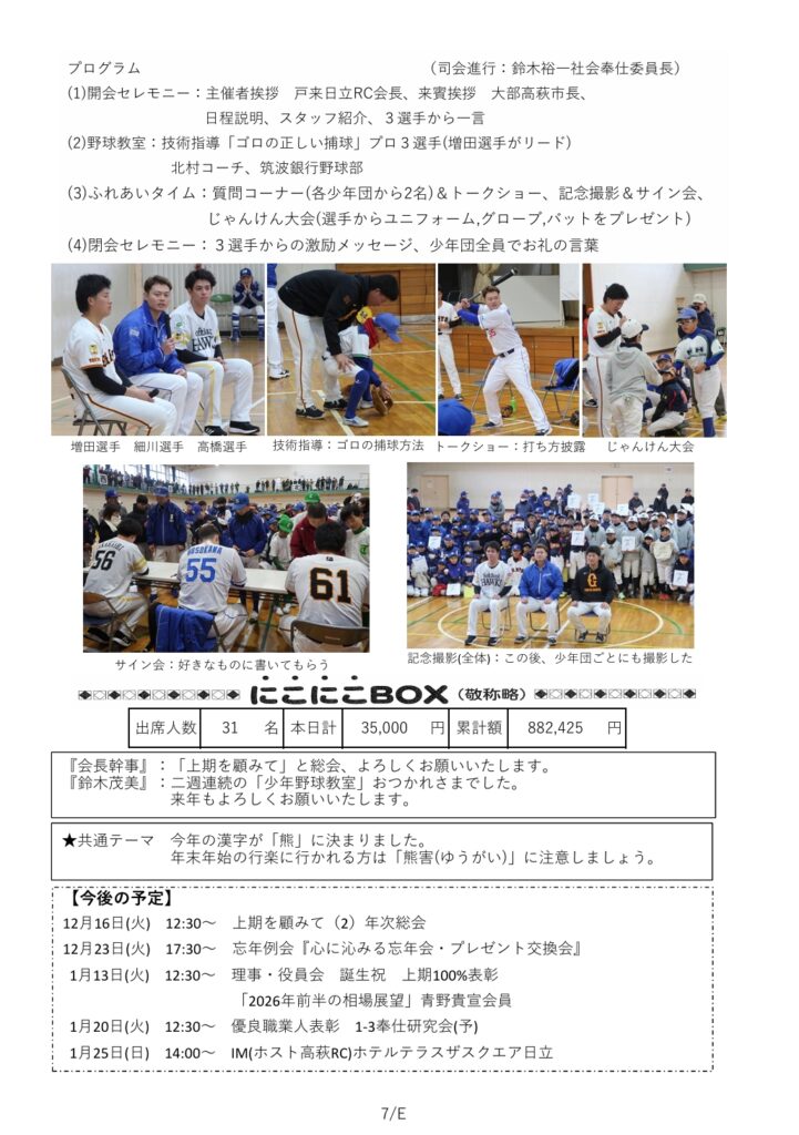 • 2025.12.14  プロ野球選手による少年野球教室